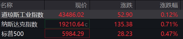 纳指涨0.71%,标普500指数涨0.47%,道指涨0.12%。英伟达涨超2%。热门中概股涨跌不一,金山云跌超7%。