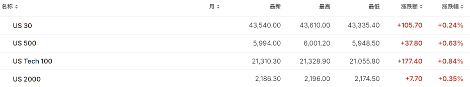 道指期货涨0.24%,标普500指数期货涨0.63%,纳斯达克100指数期货涨0.84%。
